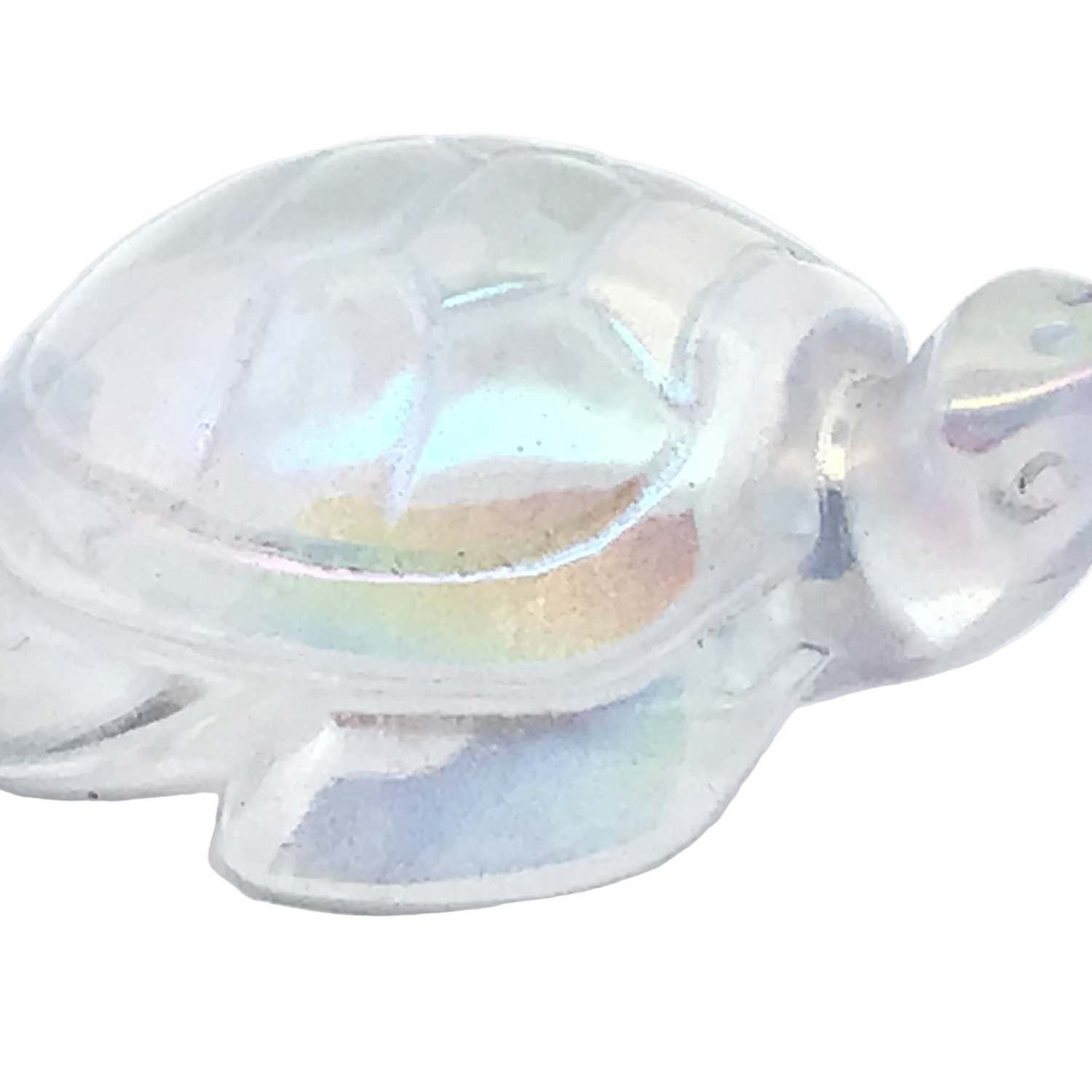 Elevate your collection with this exquisite 2.5" Angel Aura Crystal Turtle Carving, a refined piece that seamlessly blends natural beauty with artistic craftsmanship. The turtle, a symbol of longevity and protection, is beautifully rendered in Angel Aura crystal—known for its luminous iridescence created by enhanced quartz treated with precious metals. Its subtle shimmering hues impart a serene, ethereal quality, making it an ideal accent for sophisticated décor or a meaningful gift. This carving invites calm and positive energy, offering both aesthetic allure and symbolic depth to your living or work space.
