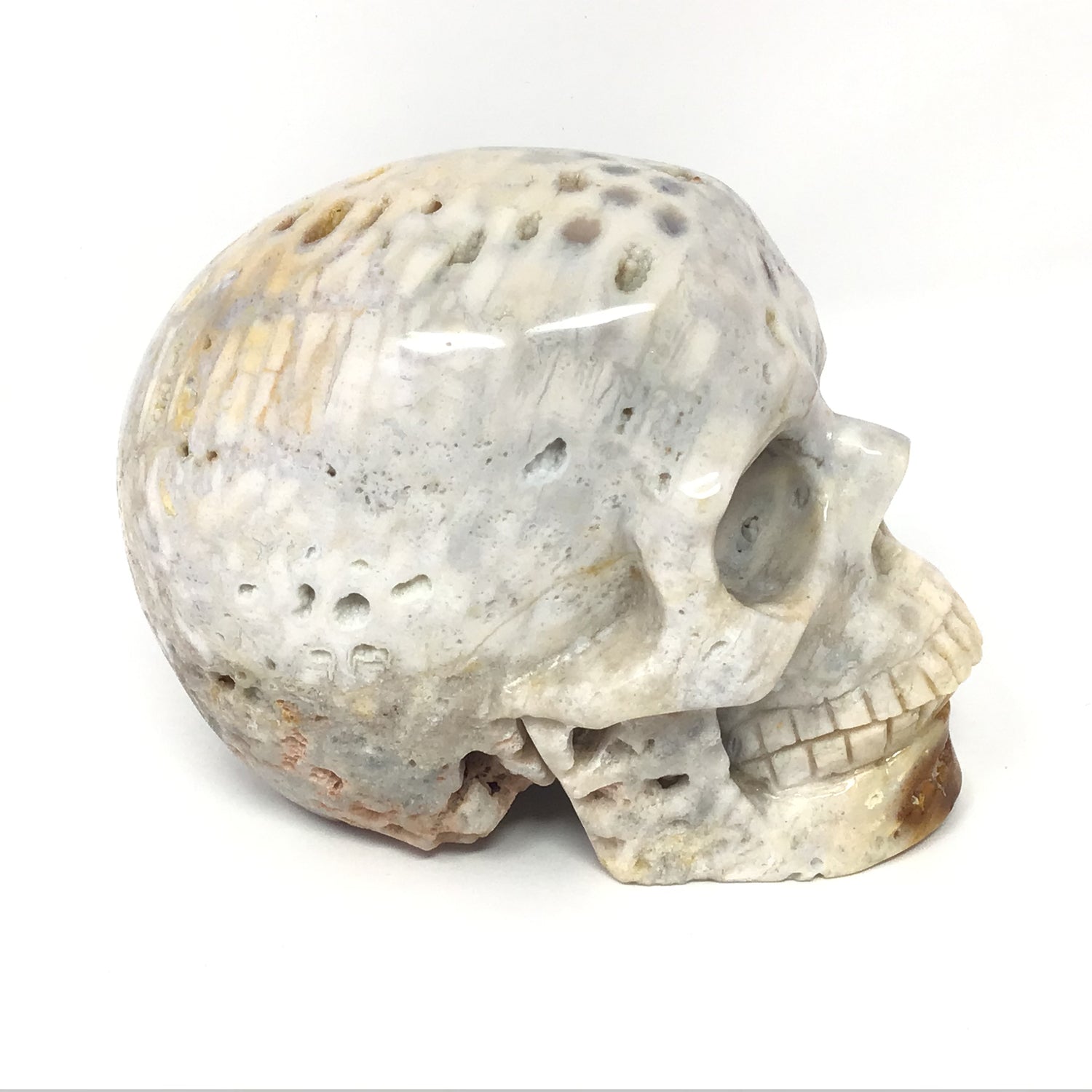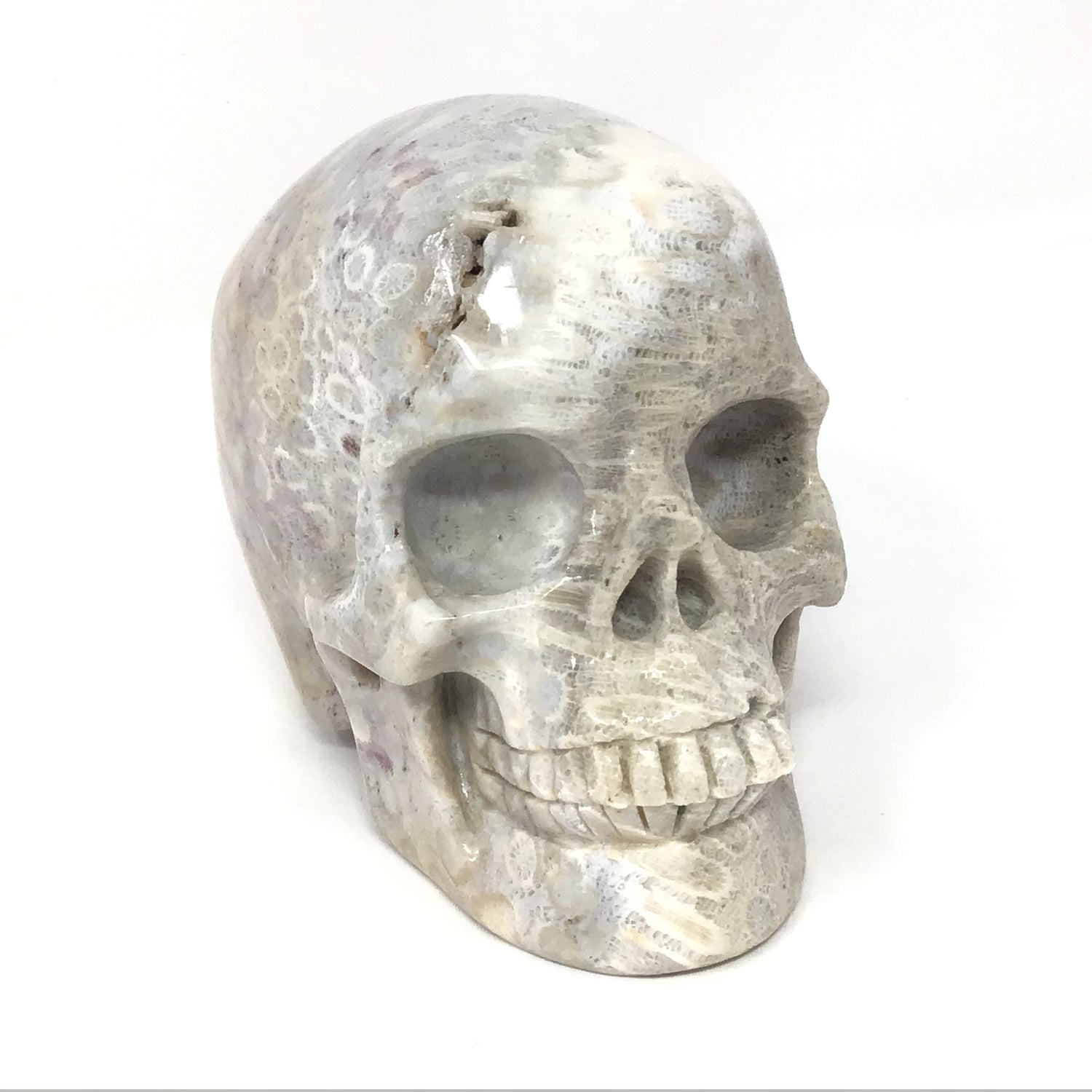 A+ Fossilized Coral Skull Carving - 4" - Pattern 1 is backordered and will ship as soon as it is back in stock.