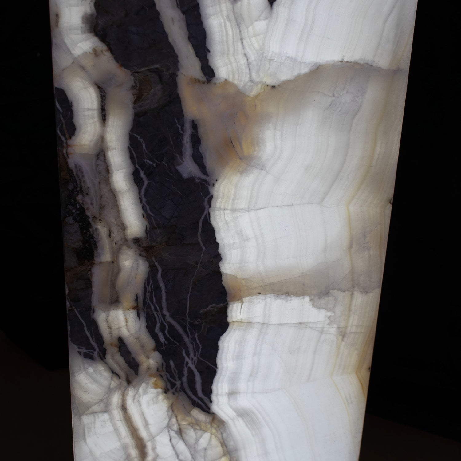 Discover the commanding presence of this 62-inch Cristalino Gray Arrowhead Onyx Pedestal Luminary—a sculptural statement piece crafted from rare, non-replicable material. Each arrowhead formation is naturally unique, showcasing the stone's distinctive gray tones and luminous qualities. Perfect as a gallery centerpiece, luxury home installation, or architectural accent, this pedestal luminary transforms any space with its organic geometry and sophisticated elegance. A true collector's piece that celebrates the beauty of nature's rarest offerings.