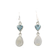 Rainbow Moonstone Pear Dangle Earrings with Faceted Trillion Blue Topaz