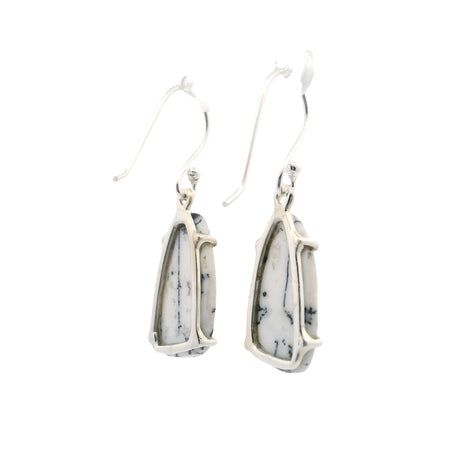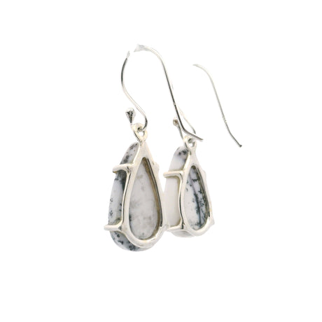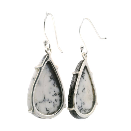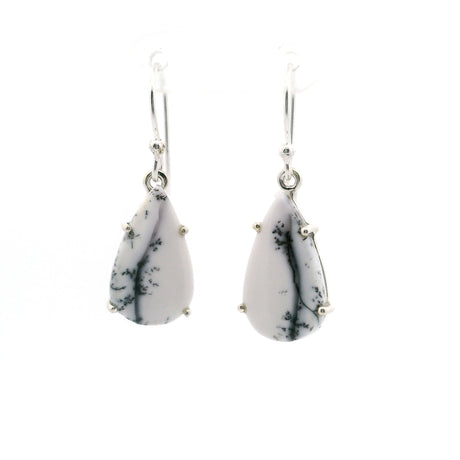 Dendritic Opal Dangle Earrings - Freeform Pear Prong Set