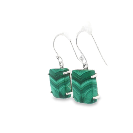 Regular price $10900Unit price /UnavailableVery low stock (2 units)Malachite Rectangle Flat Dangle Earrings Prong Set
