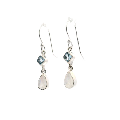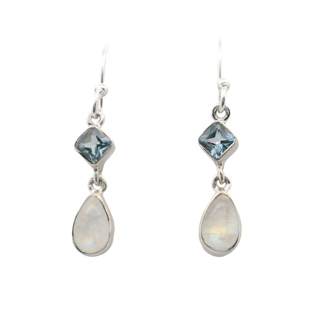 Regular price $32900Unit price /UnavailableVery low stock (2 units)Rainbow Moonstone Pear Dangle Earrings with Faceted Blue Topaz