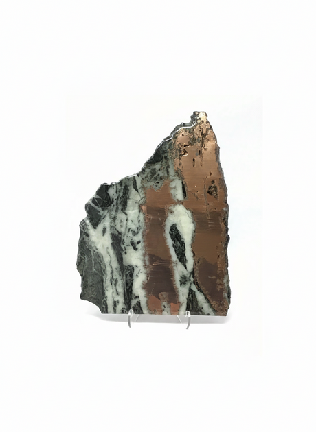 Native Michigan Vein Copper Slice with Quartz - Flat Edge with Thick Copper Veins & Mountain Shape