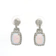 White Opal Earrings on Post - Rectangle Cabochon with White CZs in Bail & Surrounding Prong Setting in 925 Sterling Silver