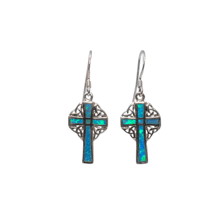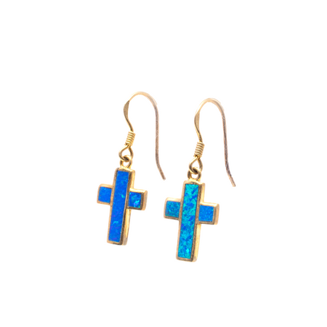 Blue Opal Cross Earrings -Sky Blue Round Opal