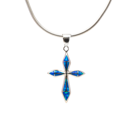 Blue Opal Cross Pendant -Mini With Sharp Points