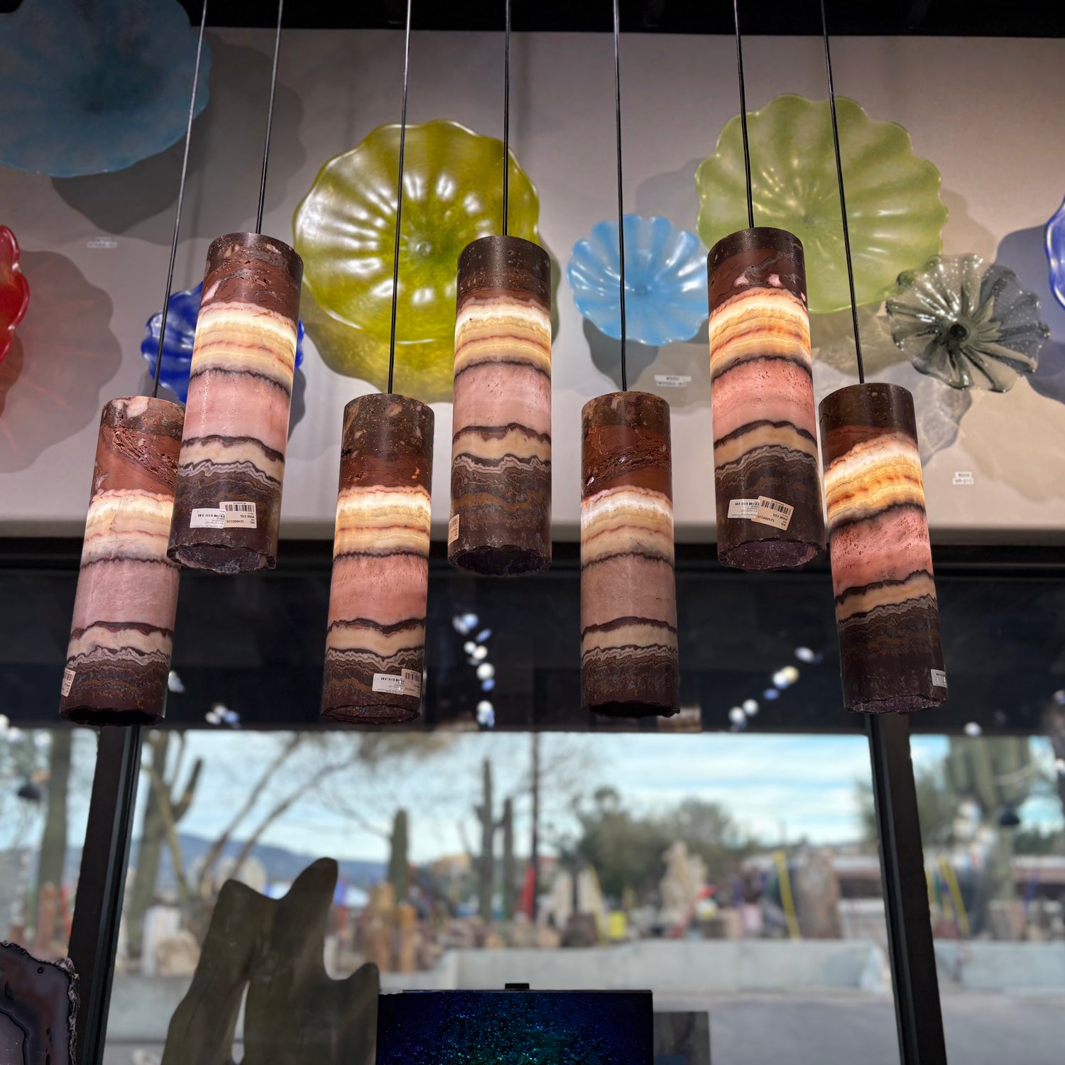 Pink Onyx Pendant Light with Black Line & Hardware - Set of 7 with Custom Canopy