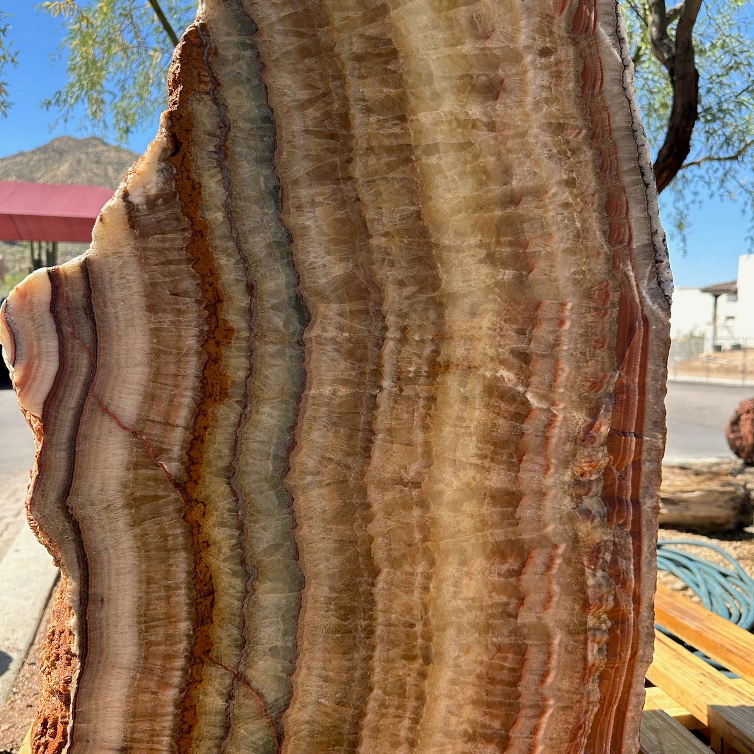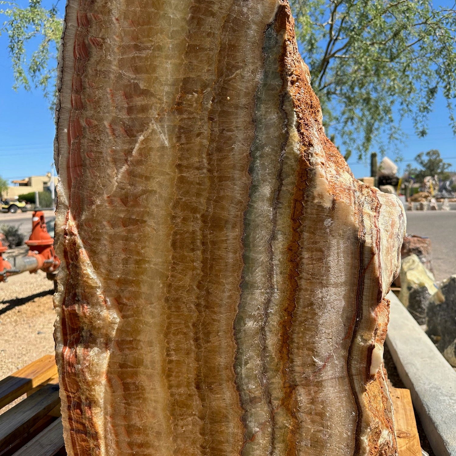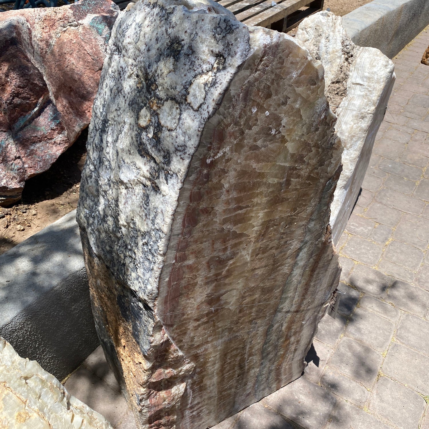This A+ Aqua Onyx Fountain is a premium natural stone outdoor water feature designed for backyards, courtyards, patios, and garden landscapes. Its soft aqua onyx color and white dendritic crystal inclusions and carved stone contours that enhance its sculptural appeal make it a striking focal point for any tranquil outdoor setting. The fountain’s flow encourages relaxation with soothing sound and movement, helping your outdoor space feel calm and inviting. Create a peaceful, eye-catching focal point for your desert landscape. Let Rare Earth Gallery’s white-glove service make your fountain dreams come true—simply choose your fountain, tell us where it goes, and we’ll handle the rest, from delivery to installation. IMPORTANT: the purchase price listed is for the FOUNTAIN ONLY and DOES NOT INCLUDE the cost of a basin, pump, parts or installation. Before purchasing a fountain online, we STRONGLY recommend you call us at (480) 575-4360 for a FREE consultation to discuss these additional costs and schedule a pre-site inspection. Also, free shipping does NOT apply to fountains, please call for a quote.