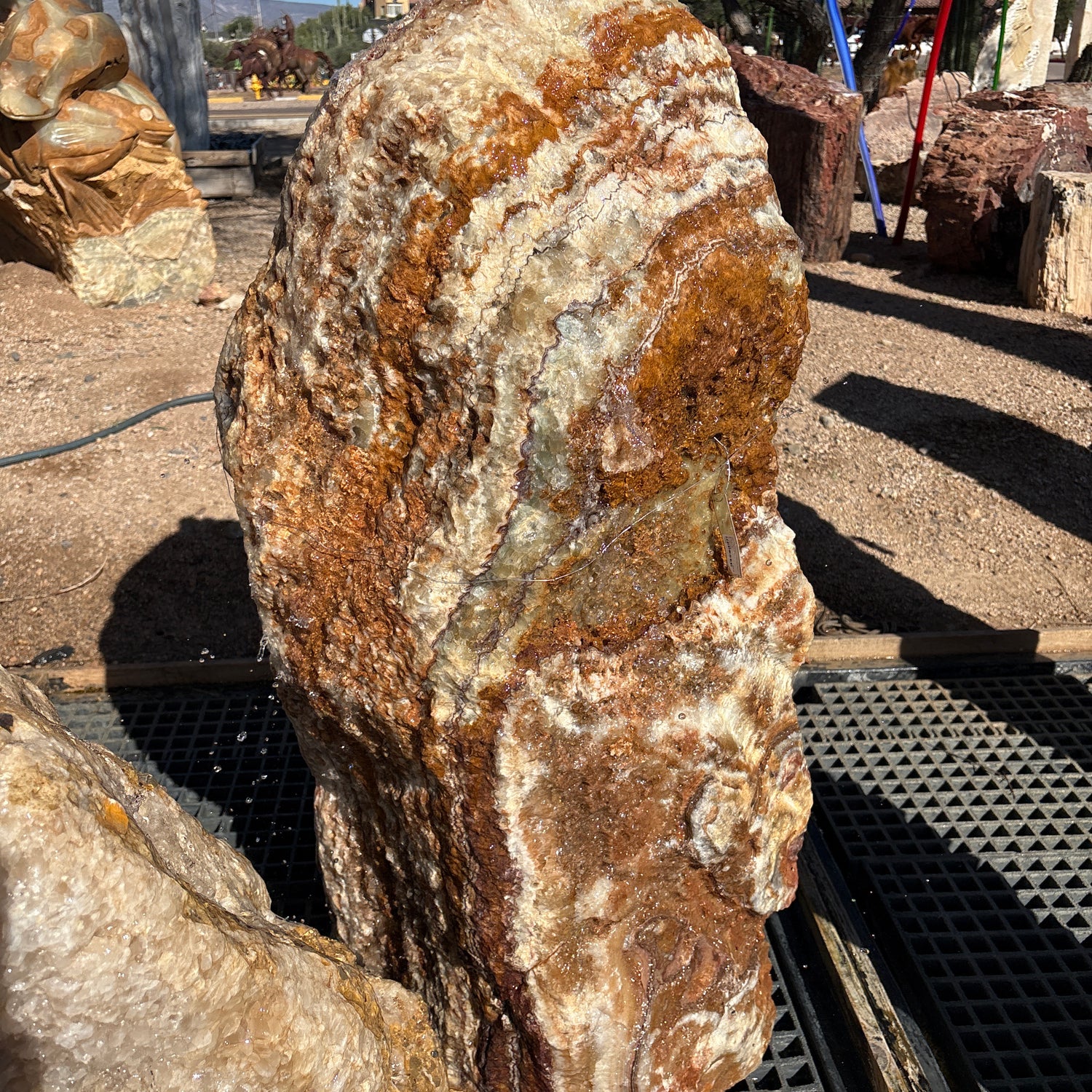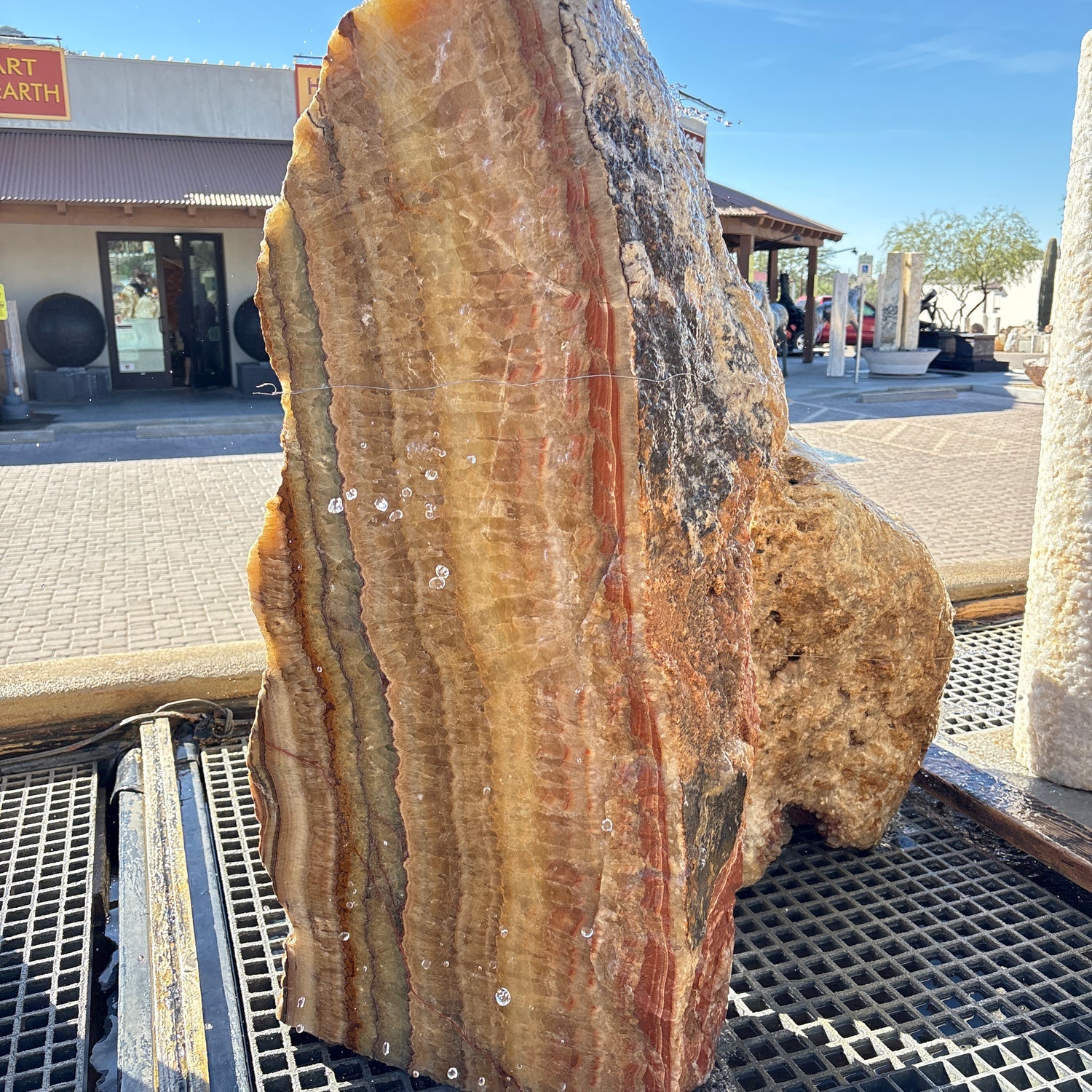 This Aqua Onyx Fountain is a premium natural stone outdoor water feature designed for backyards, courtyards, patios, and garden landscapes. Its soothing aqua onyx tones with soft translucency and carved stone contours that enhance its sculptural appeal make it a striking focal point for any tranquil outdoor setting. The fountain’s flow encourages relaxation with soothing sound and movement, helping your outdoor space feel calm and inviting. Create a peaceful, eye-catching focal point for your desert landscape. Let Rare Earth Gallery’s white-glove service make your fountain dreams come true—simply choose your fountain, tell us where it goes, and we’ll handle the rest, from delivery to installation. IMPORTANT: the purchase price listed is for the FOUNTAIN ONLY and DOES NOT INCLUDE the cost of a basin, pump, parts or installation. Before purchasing a fountain online, we STRONGLY recommend you call us at (480) 575-4360 for a FREE consultation to discuss these additional costs and schedule a pre-site inspection. Also, free shipping does NOT apply to fountains, please call for a quote.