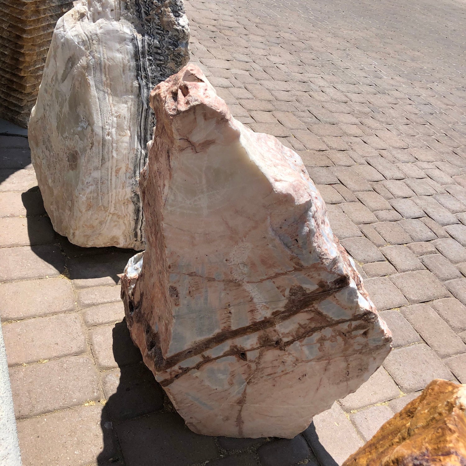 This Cherry Blossom Onyx Fountain - Boulder with 1 Cut Side is a premium natural stone outdoor water feature designed for backyards, courtyards, patios, and garden landscapes. Its soft cherry blossom hues with gentle banding and a substantial boulder-like form that brings sculptural presence make it a striking focal point for any tranquil outdoor setting. The fountain’s flow encourages relaxation with soothing sound and movement, helping your outdoor space feel calm and inviting. Create a peaceful, eye-catching focal point for your desert landscape. Let Rare Earth Gallery’s white-glove service make your fountain dreams come true—simply choose your fountain, tell us where it goes, and we’ll handle the rest, from delivery to installation. IMPORTANT: the purchase price listed is for the FOUNTAIN ONLY and DOES NOT INCLUDE the cost of a basin, pump, parts or installation. Before purchasing a fountain online, we STRONGLY recommend you call us at (480) 575-4360 for a FREE consultation to discuss these additional costs and schedule a pre-site inspection. Also, free shipping does NOT apply to fountains, please call for a quote.
