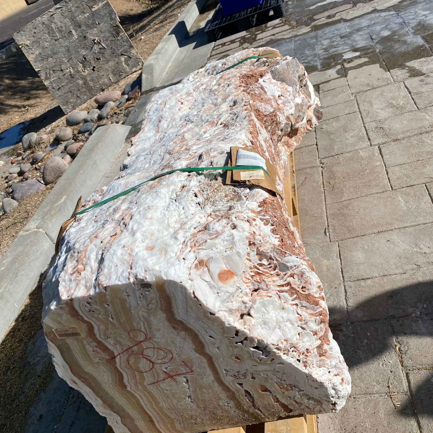 This Zebra Fossil Onyx Pillar Fountain wit 2 Hole End Cuts with a Single Cut Side is a premium natural stone outdoor water feature designed for backyards, courtyards, patios, and garden landscapes. Its fossil-rich onyx layers and organic natural banding and a vertical pillar form that adds architectural height and elegance make it a striking focal point for any tranquil outdoor setting. The fountain’s flow encourages relaxation with soothing sound and movement, helping your outdoor space feel calm and inviting. Create a peaceful, eye-catching focal point for your desert landscape. Let Rare Earth Gallery’s white-glove service make your fountain dreams come true—simply choose your fountain, tell us where it goes, and we’ll handle the rest, from delivery to installation. IMPORTANT: the purchase price listed is for the FOUNTAIN ONLY and DOES NOT INCLUDE the cost of a basin, pump, parts or installation. Before purchasing a fountain online, we STRONGLY recommend you call us at (480) 575-4360 for a FREE consultation to discuss these additional costs and schedule a pre-site inspection. Also, free shipping does NOT apply to fountains, please call for a quote.