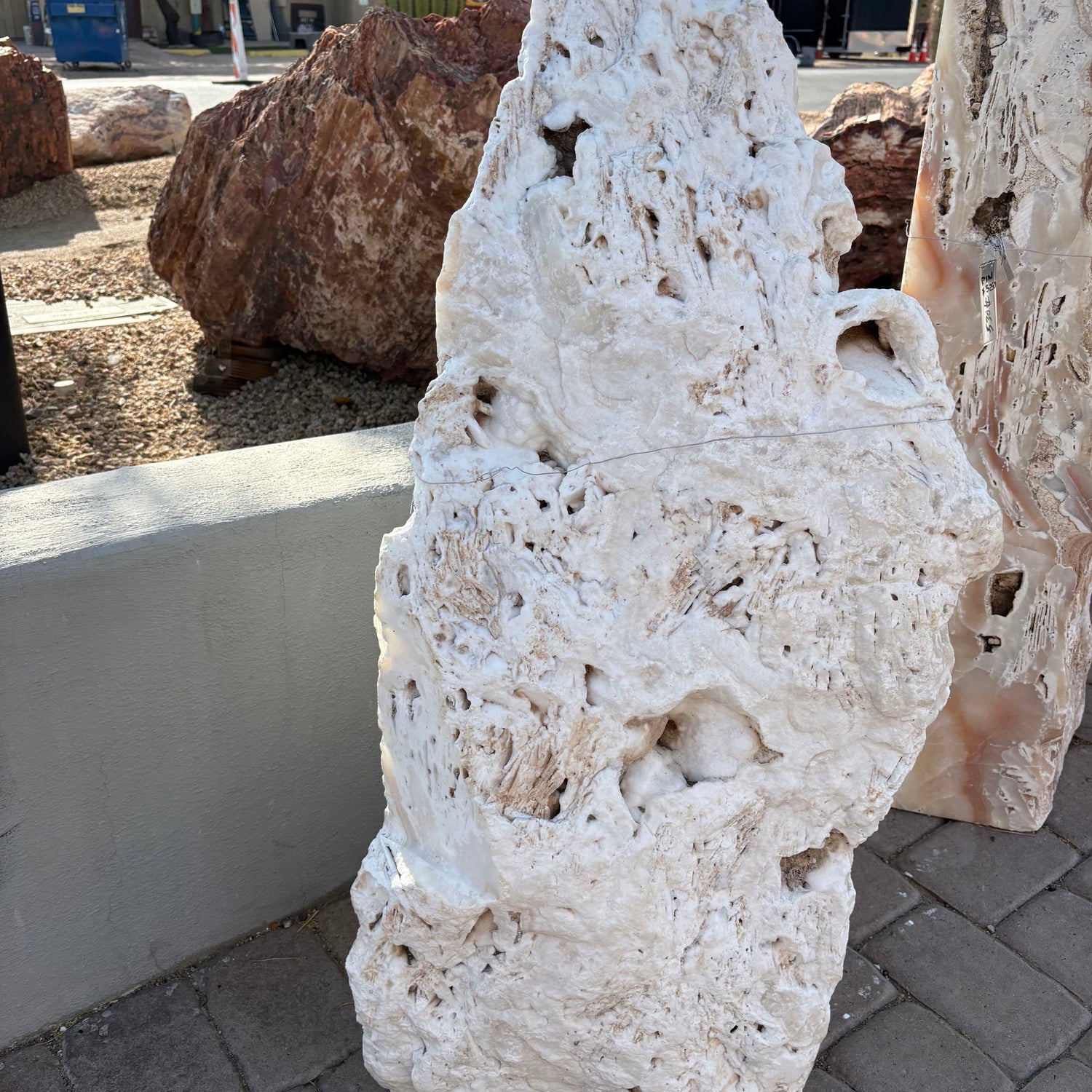 This White Fossil Onyx Fountain is a premium natural stone outdoor water feature designed for backyards, courtyards, patios, and garden landscapes. Its fossil-rich onyx layers with organic banding and a substantial boulder form that adds sculptural presence make it a striking focal point for any tranquil outdoor setting. The fountain’s flow encourages relaxation with soothing sound and movement, helping your outdoor space feel calm and inviting. Create a peaceful, eye-catching focal point for your desert landscape. Let Rare Earth Gallery’s white-glove service make your fountain dreams come true—simply choose your fountain, tell us where it goes, and we’ll handle the rest, from delivery to installation. IMPORTANT: the purchase price listed is for the FOUNTAIN ONLY and DOES NOT INCLUDE the cost of a basin, pump, parts or installation. Before purchasing a fountain online, we STRONGLY recommend you call us at (480) 575-4360 for a FREE consultation to discuss these additional costs and schedule a pre-site inspection. Also, free shipping does NOT apply to fountains, please call for a quote.