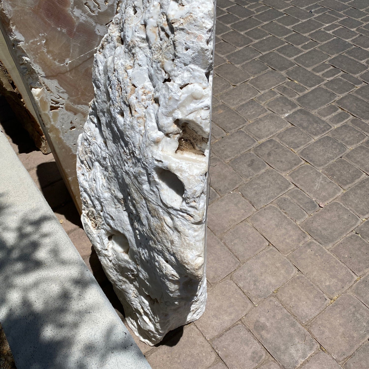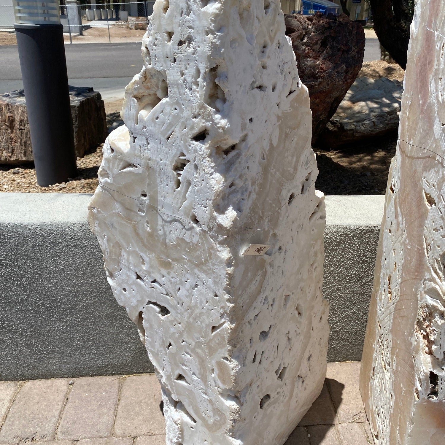 This White Onyx Rustic Rock fountain is a premium natural stone outdoor water feature designed for backyards, courtyards, patios, and garden landscapes. Its luminous white onyx with gentle translucency and a rugged rustic rock profile with organic edges make it a striking focal point for any tranquil outdoor setting. The fountain’s flow encourages relaxation with soothing sound and movement, helping your outdoor space feel calm and inviting. Create a peaceful, eye-catching focal point for your desert landscape. Let Rare Earth Gallery’s white-glove service make your fountain dreams come true—simply choose your fountain, tell us where it goes, and we’ll handle the rest, from delivery to installation. IMPORTANT: the purchase price listed is for the FOUNTAIN ONLY and DOES NOT INCLUDE the cost of a basin, pump, parts or installation. Before purchasing a fountain online, we STRONGLY recommend you call us at (480) 575-4360 for a FREE consultation to discuss these additional costs and schedule a pre-site inspection. Also, free shipping does NOT apply to fountains, please call for a quote.