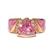 Pink Opal Ring with Rose Gold Overlay - Inlaid Top Band with Pink Cz Trillion Set in Raised Sterling Silver Half Bezel & 2 White Cz Trios on Side