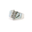 White Opal Inlay Art Deco Ring with 3 White Czs Stacked Sz10
