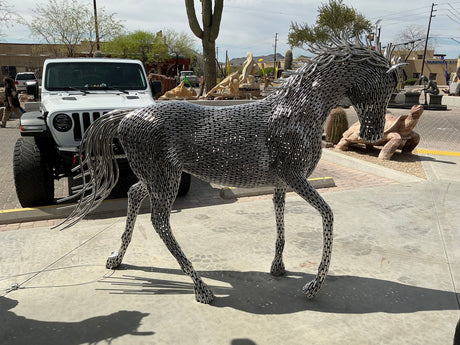 Stainless Steel Horse Sculpture - Trotting Posture