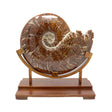 This Polished Ammonite Fossil With High-Quality Sutures on Custom Stand is an impressive and unique home accessory. With intricate sutures, it stands out and adds beauty to any décor. This rare collector's item is a conversation starter and a timeless addition to your home. Mount it on the custom-made stand for emphasis. Experience the beauty and uniqueness of this fossil.