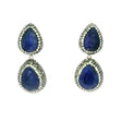 Faceted Blue Sapphire Dangle Earrings On-post - 2 Pears With Marcasite & Silver Crystal Pave Bezels