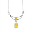 Elevate your elegance with this faceted yellow sapphire necklace, featuring a round prong-set gem nestled within a polished 925 sterling silver half-moon frame. Below, a faceted oval sapphire dangles gracefully, catching the light with every movement. This refined design balances modern sophistication with timeless charm, making it a captivating statement piece for any occasion.