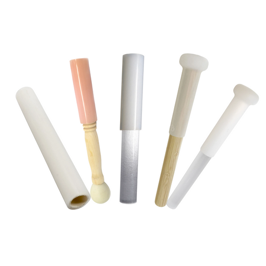 Shop singing bowl strikers including hand-blown quartz, selenite, and bamboo wood—crafted for clear, resonant sound and easy use.