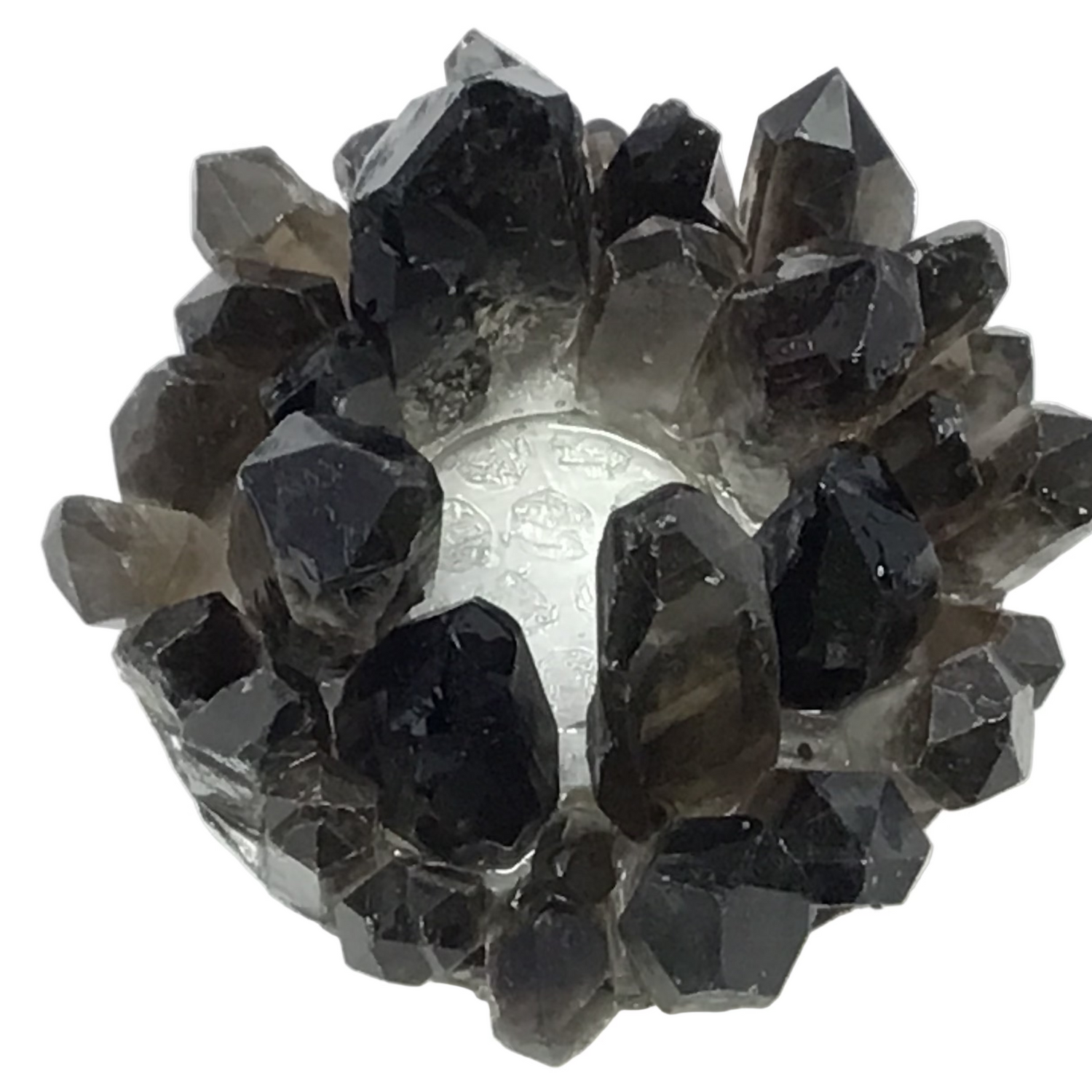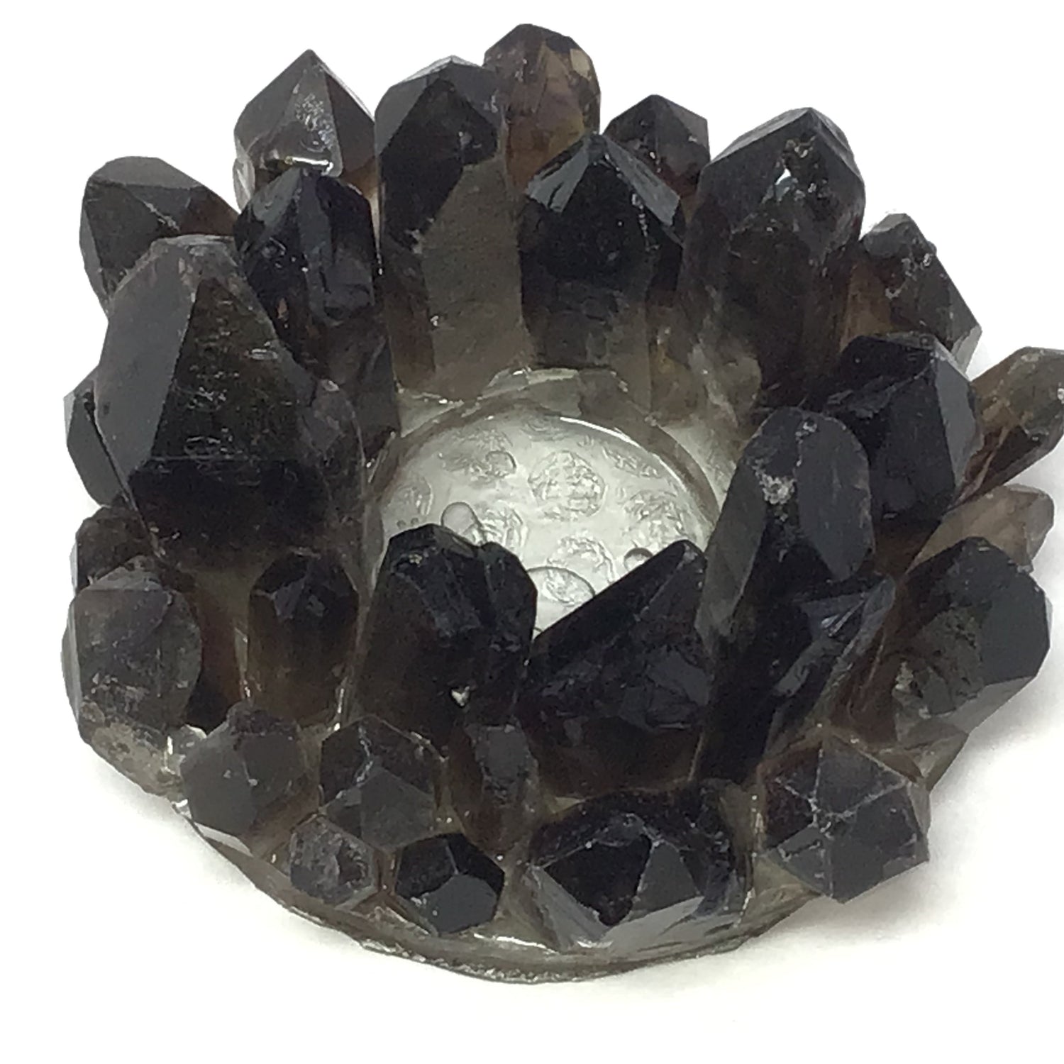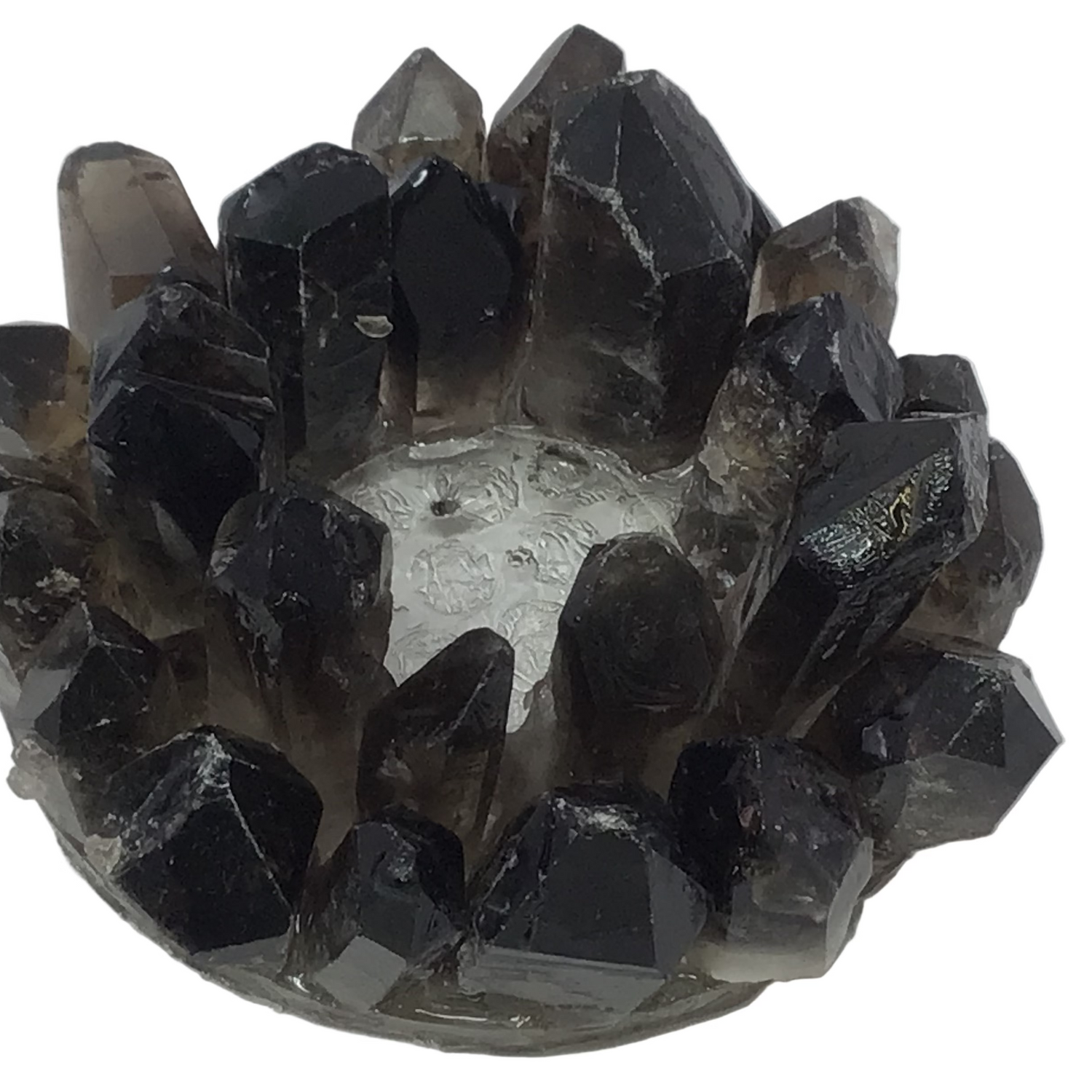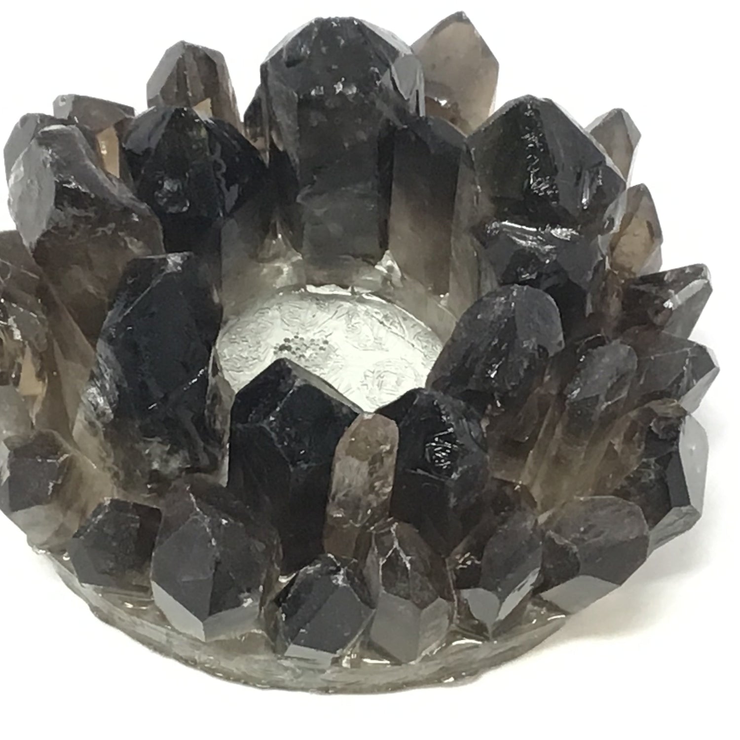 Illuminate with grounding beauty using this Smoky Quartz Crystal Points Candle Holder! Natural smoky quartz points surround the candle well, creating a stunning display that combines crystalline elegance with functional lighting. The translucent smoky tones glow beautifully when candlelit while the natural points add raw, earthy texture. Known for grounding and stress relief, smoky quartz transforms your candle ritual into an energetically powerful practice. Perfect for meditation spaces, altars, or creating ambiance anywhere, this holder brings the protective, calming energy of smoky quartz together with the transformative magic of candlelight!
