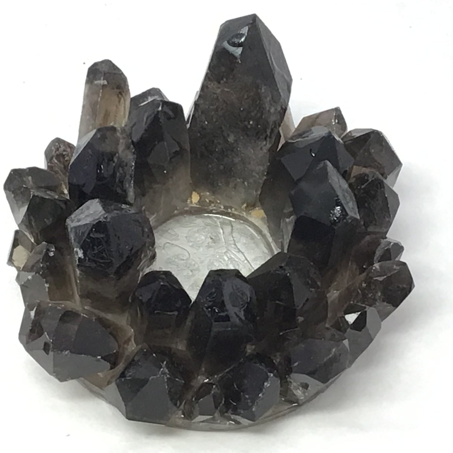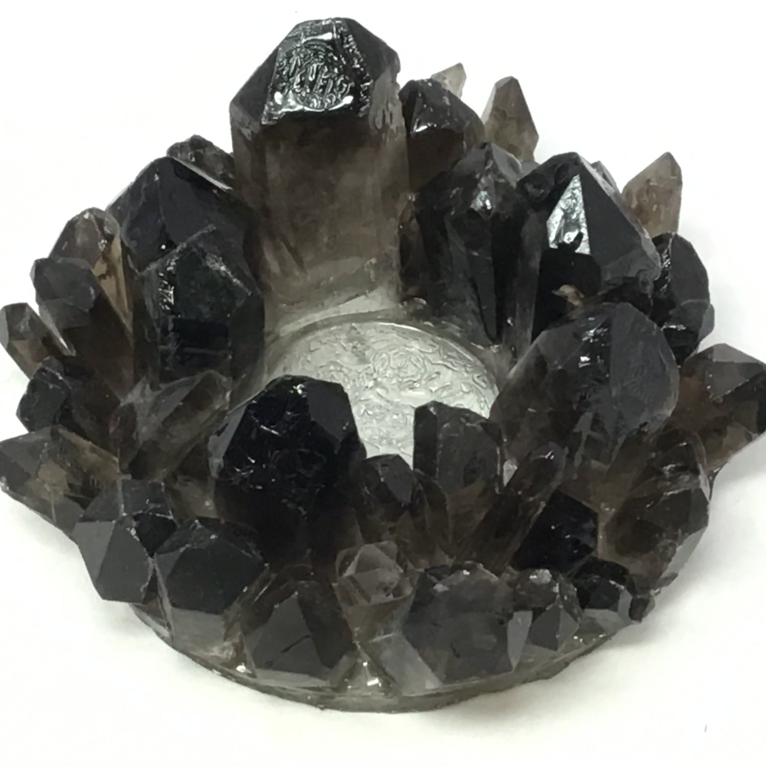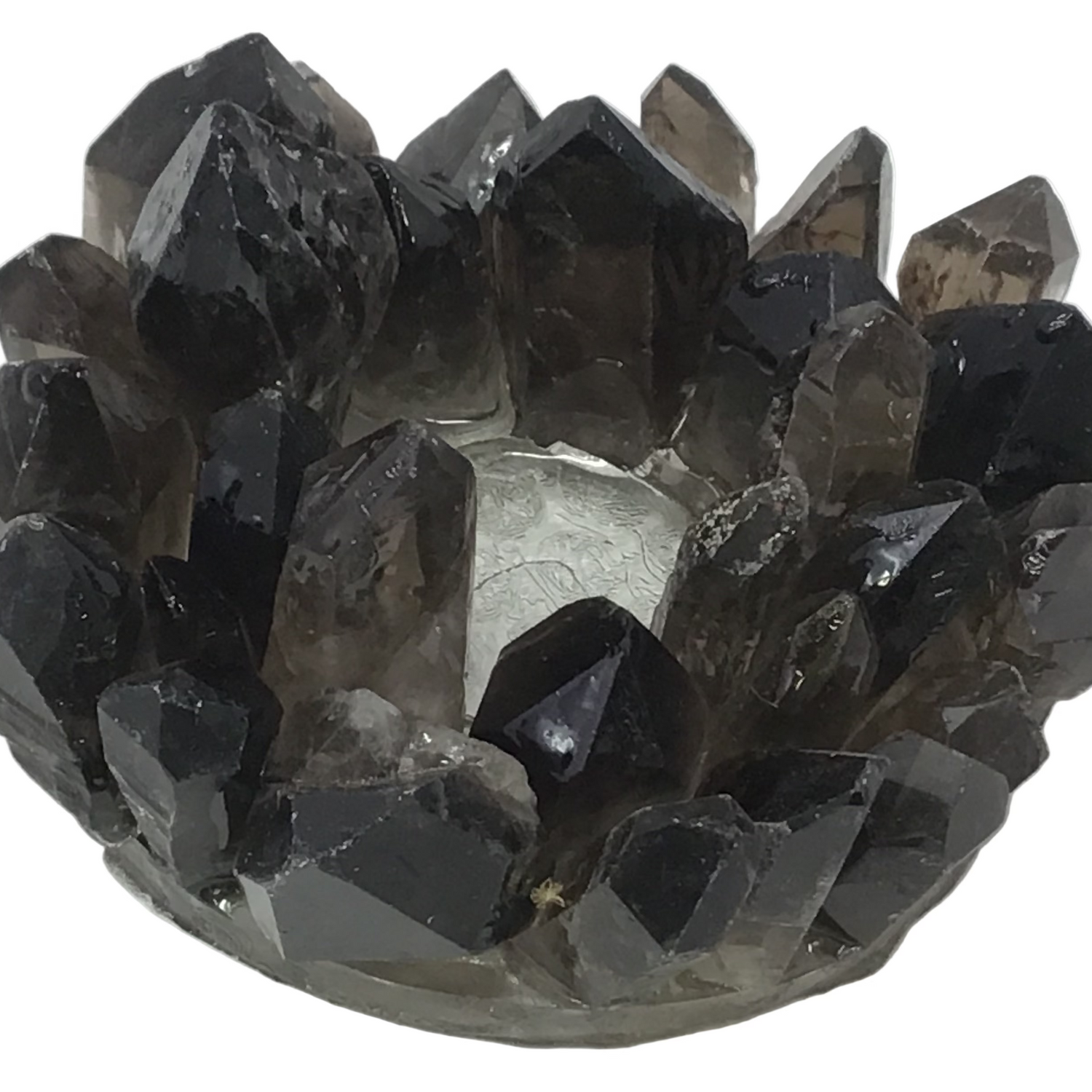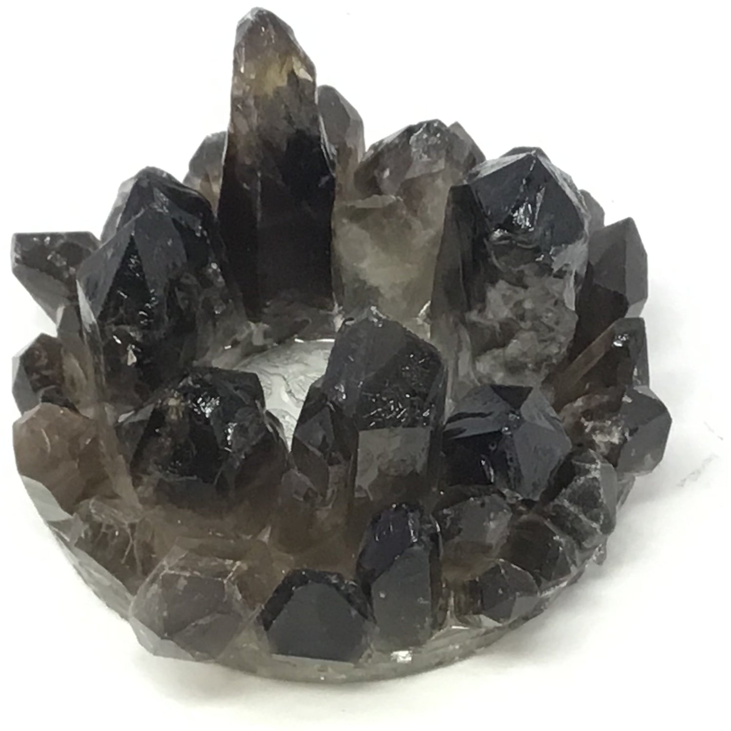 Illuminate with grounding beauty using this Smoky Quartz Crystal Points Candle Holder! Natural smoky quartz points surround the candle well, creating a stunning display that combines crystalline elegance with functional lighting. The translucent smoky tones glow beautifully when candlelit while the natural points add raw, earthy texture. Known for grounding and stress relief, smoky quartz transforms your candle ritual into an energetically powerful practice. Perfect for meditation spaces, altars, or creating ambiance anywhere, this holder brings the protective, calming energy of smoky quartz together with the transformative magic of candlelight!
