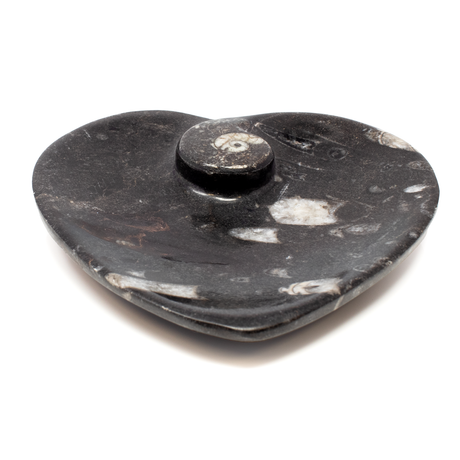Orthoceras and Ammonite SeaBed Fossil Small Heart Dish
