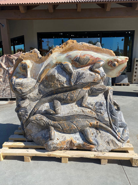 Regular price $28,00000Unit price /UnavailableVery low stock (1 unit)Grey Marble & Green Talan Onyx Iguana Cluster Carving With Coral - Large
