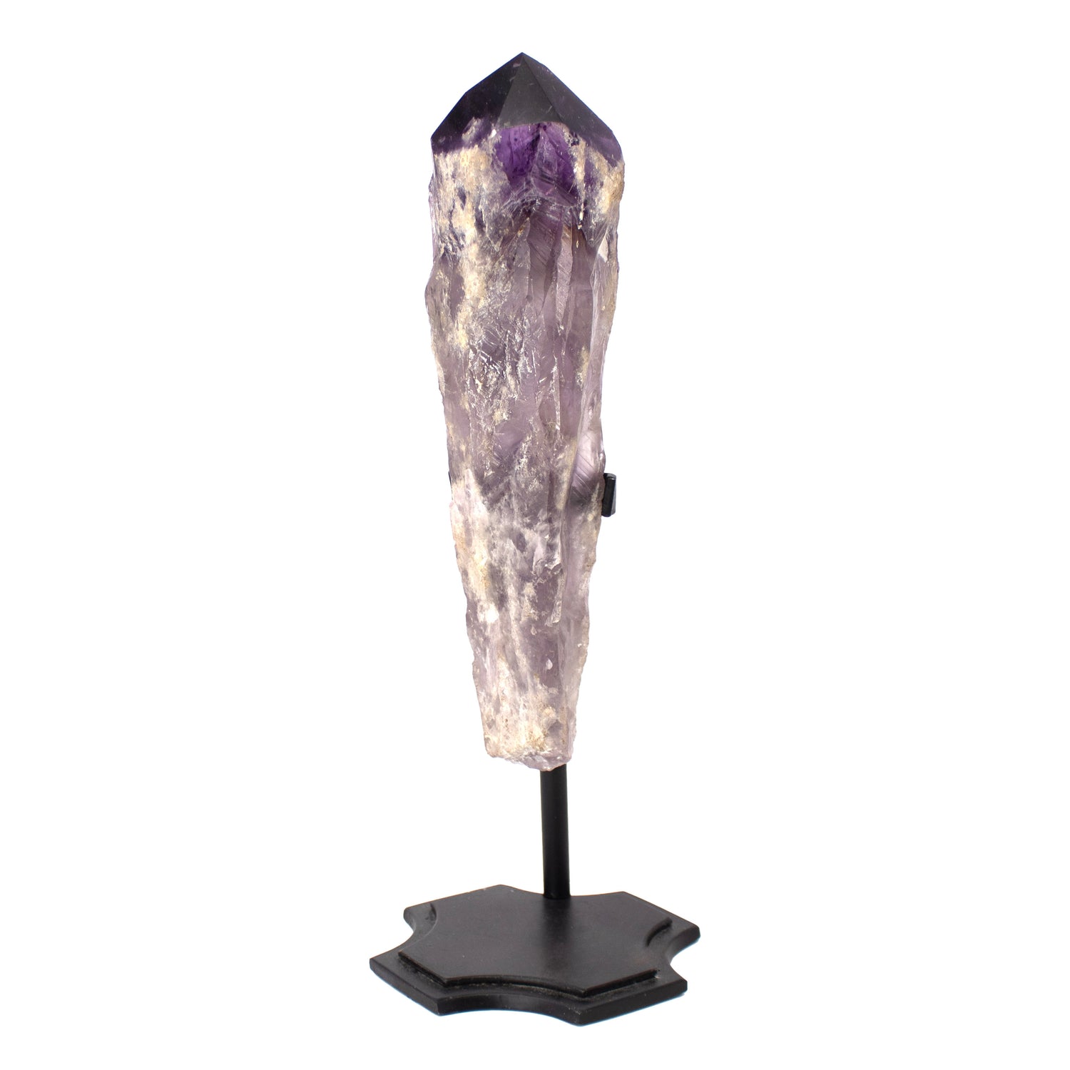 Single Bahia Amethyst Point on Custom Chopper Cross Base - Vertical with Phantoms is backordered and will ship as soon as it is back in stock.
