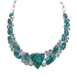 This striking collar necklace showcases a luminous reverse pear-cut Shattuckite Azurite focal stone, prized for its rich blue-green hues and natural banding patterns. The centerpiece is complemented by faceted Blue Topaz and Kyanite accents that catch light beautifully, creating depth and movement along the neckline. Handcrafted with attention to gemstone quality and design balance, this piece bridges statement jewelry and wearable art. The collar silhouette frames the décolletage elegantly, making it ideal for both special occasions and curated everyday wear. Each stone is selected for color saturation and clarity, ensuring a one-of-a-kind piece that reflects the natural beauty of these premium minerals.