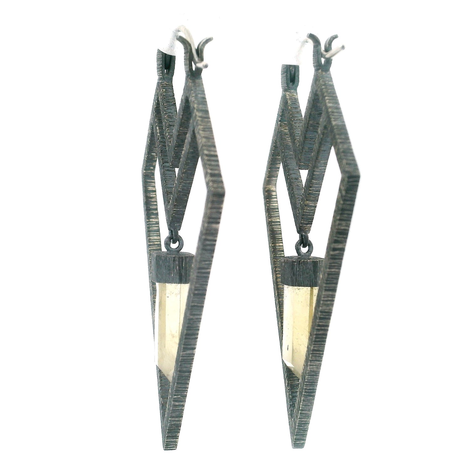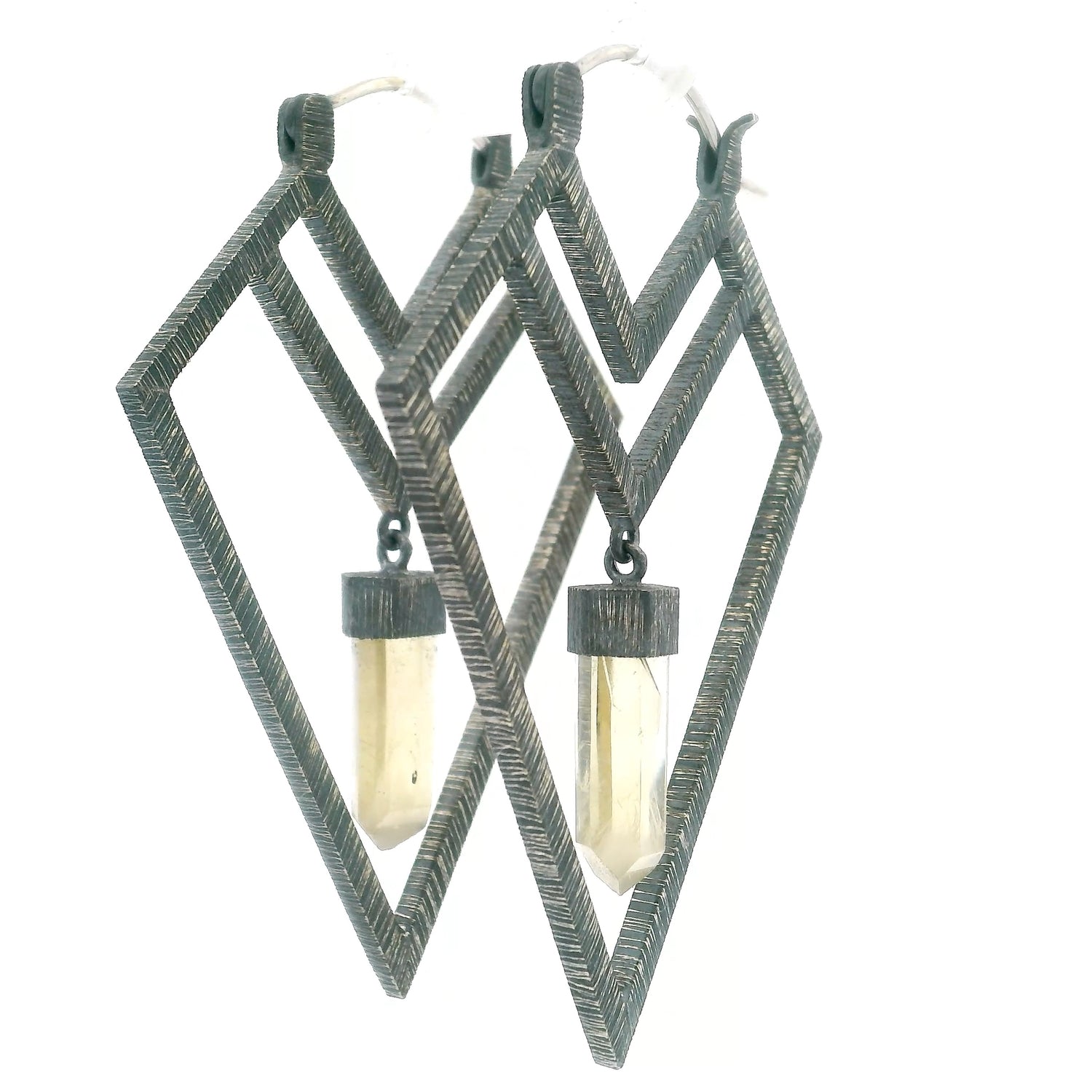 Unpolished Quartz Crystal Delving Arrow Hoop Earrings - Phantom Smoky Quartz Citrine is backordered and will ship as soon as it is back in stock.