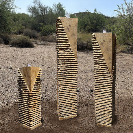 Regular price $8,30900Unit price /UnavailableVery low stock (1 unit)Carmel Travertine Column Trio Fountain Set With Pins - Design With Smooth Corner