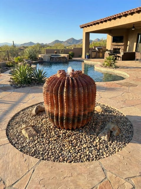 Regular price $2,07500Unit price /UnavailableVery low stock (1 unit)Red Travertine Barrel Cactus Carving Fountain