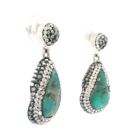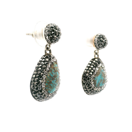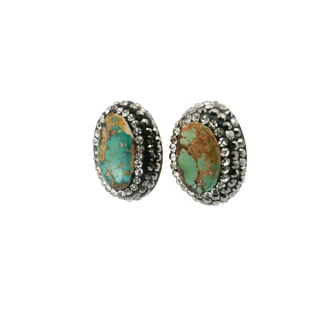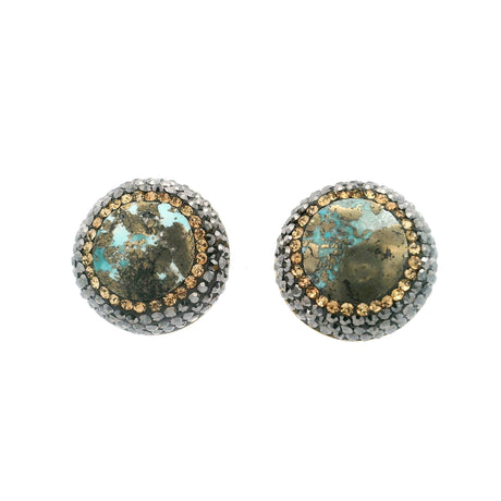Nano Crystal Stud Earrings - Turquoise Snake with Blue Eyes in Gold Vermeil over 925 Sterling Silver