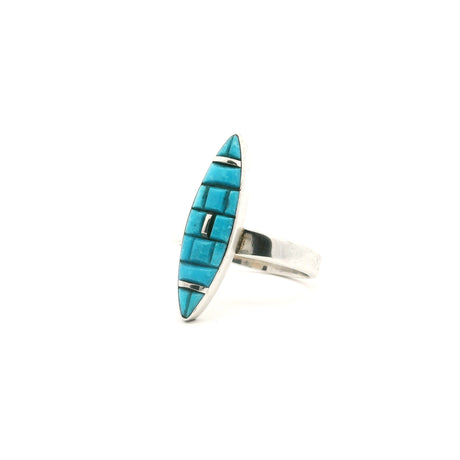 Regular price $13900Unit price /UnavailableVery low stock (1 unit)Kingman Az Turquoise Popcorn Inlay Ring - Oval Sharp Sz8.5