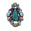 Introducing the Leo Feeney Chrysocolla Ring with Blue Topaz, Peridot, Sleeping Beauty Turquoise and Garnet. This stunning ring features a combination of gemstones set in 925 sterling silver alloy with a rhodium finish. The Chrysocolla stone center is surrounded by a halo of Peridot gemstones, complemented by Blue Topaz, Sleeping Beauty Turquoise, and Garnet stones. Perfect for any occasion, this ring is a beautiful way to show your love and appreciation. Available in size 6.