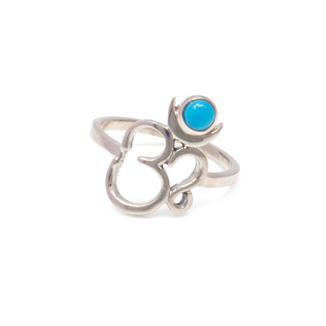 Turquoise Ring - Dainty Round Cabochon Bezel Set with 925 Sterling Silver OM Symbol sz5