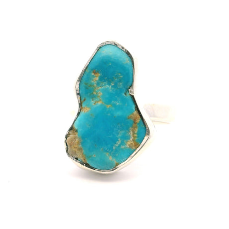 New Mexican Turquoise Ring - Polished Freeform Cat Face Bezel Set in Simple 925 Sterling Silver sz9