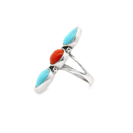 Regular price $8900Unit price /UnavailableVery low stock (1 unit)New Mexican Turquoise Ring - Polished Two-Tone Freeform Bezel Set In Simple 925 Sterling Silver sz7