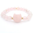Cat Face Carved Bead & 8mm Rounds Beaded Bracelet with Gold Spacers - Rose Quartz is backordered and will ship as soon as it is back in stock.