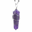 Amethyst Wire Wrapped Pendant A QualityAmethyst is a variety of quartz and derives its purple color from large trace quantities of the mineral magnesium sulfur, along with micro quantities of various minerals found within the molten earth around the “vug” during crystallization. Each Amethyst crystal forms as a six-sided prism, ending (terminating) in a six-sided pyramid. Traditionally believed to prevent intoxication by crushing and placing in wine glasses. Amethyst holds transformative energy, and is also used as protection for travelers. Amethyst brings energies of calm, balance, courage, sobriety and inner strength. Chains are sold separately. Each item is unique and one of a kind. Nature's treasures do vary in their shape and color.