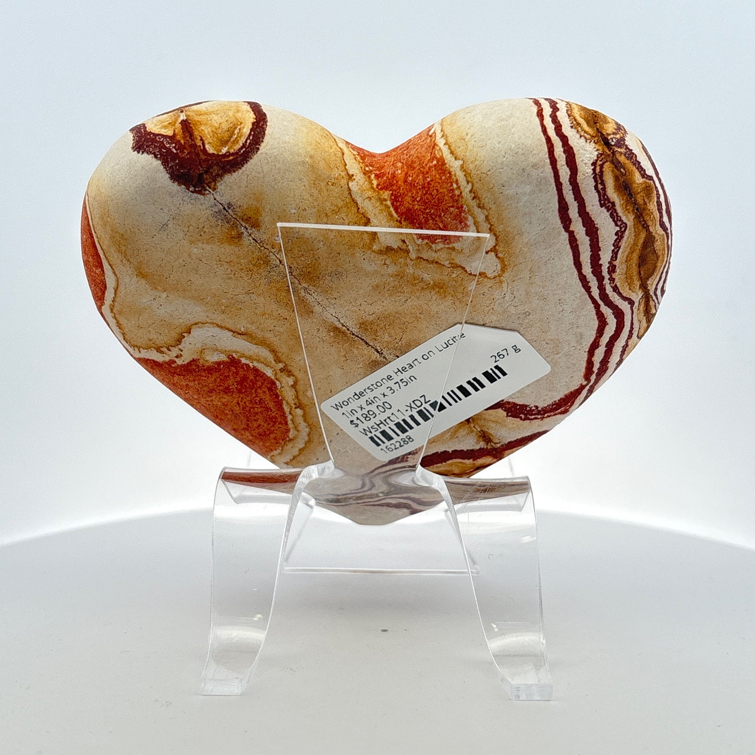 Wonderstone Heart on Lucite Stand - Zebra Side with Sedona Reds is backordered and will ship as soon as it is back in stock.