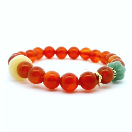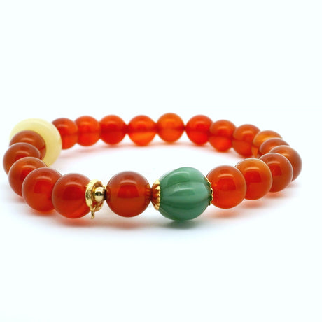 Regular price $3000Unit price /UnavailableLow stock (9 units)Carnelian with Aventurine & Butter Jade Beaded Bracelet with Quartz Paw Charm - 8mm Rounds