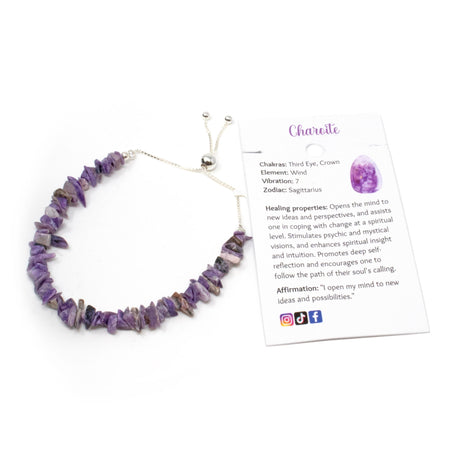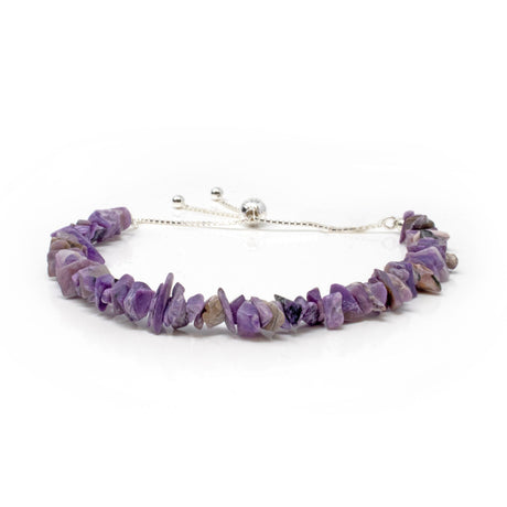 Regular price $1600Unit price /UnavailableVery low stock (2 units)Charoite Chip Beaded Bracelet with 925 Sterling Silver Adjustable Ball & Chain