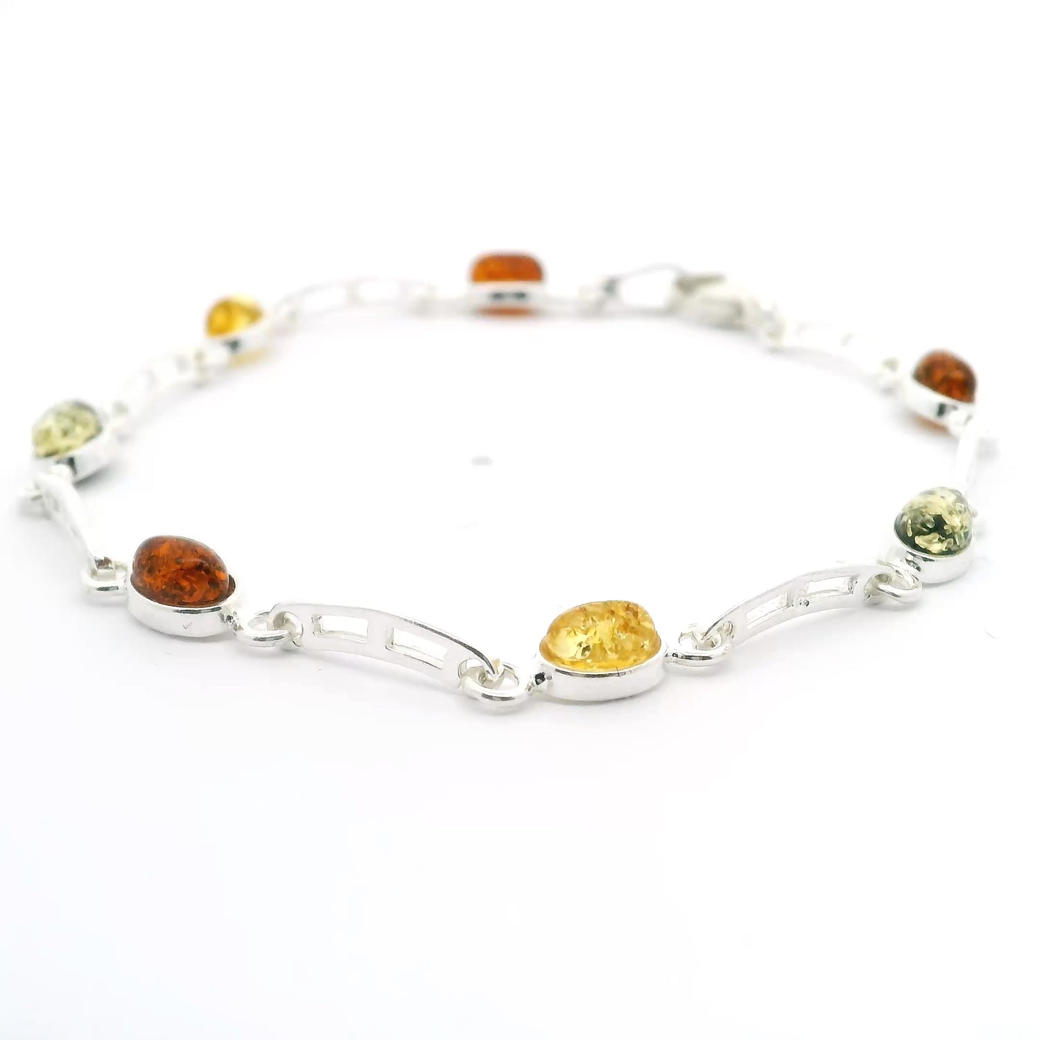 Classic Trio Amber Link Bracelet with Bridge-Design Links Bezel Set in 925 Sterling Silver