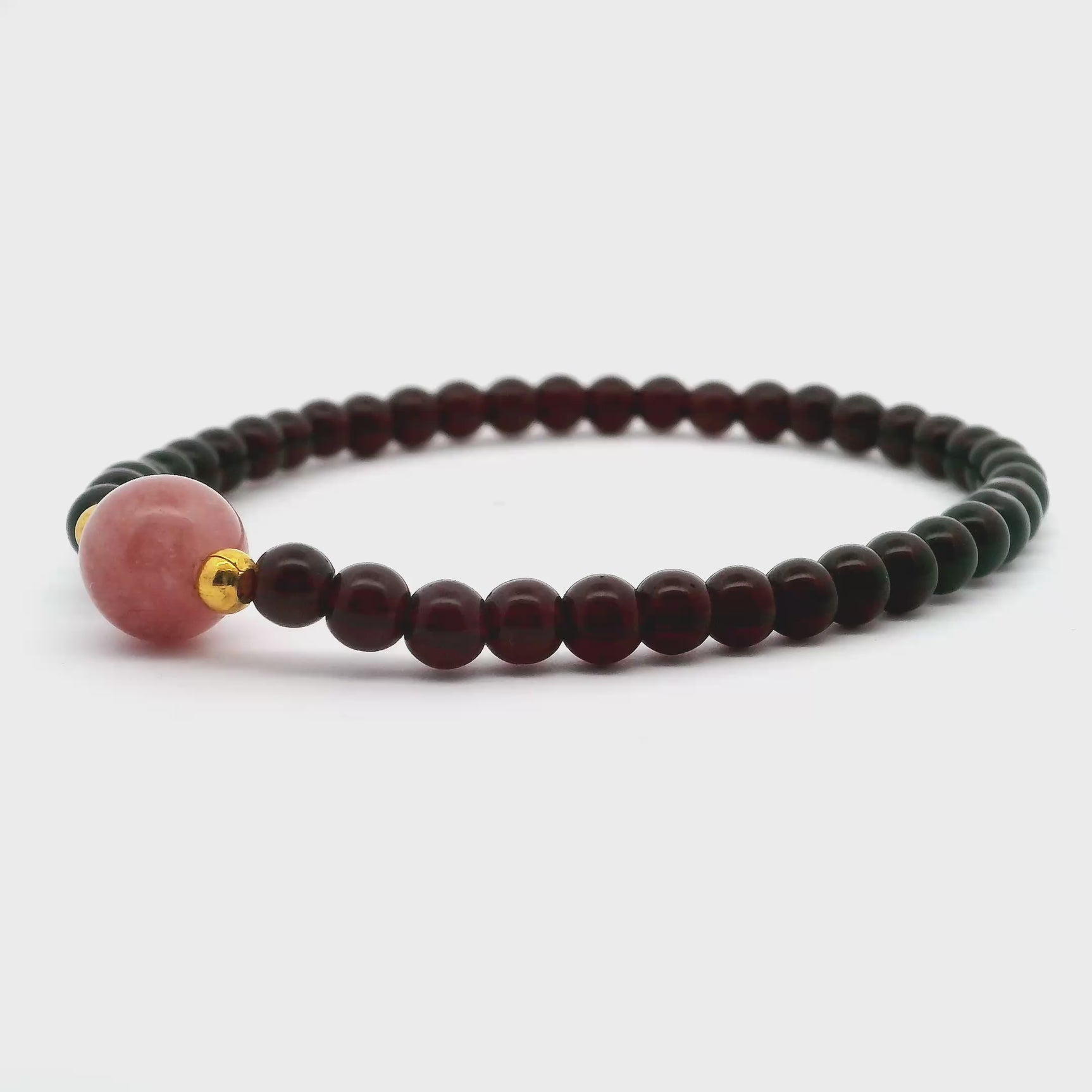 Garnet Beaded Bracelet 4mm Rounds with 8mm Rose Quartz Round Focal Bead
