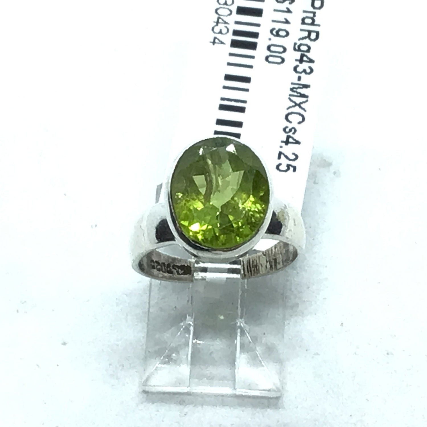 Peridot Ring - Simple Bezel Set Faceted Oval Sz 4.25