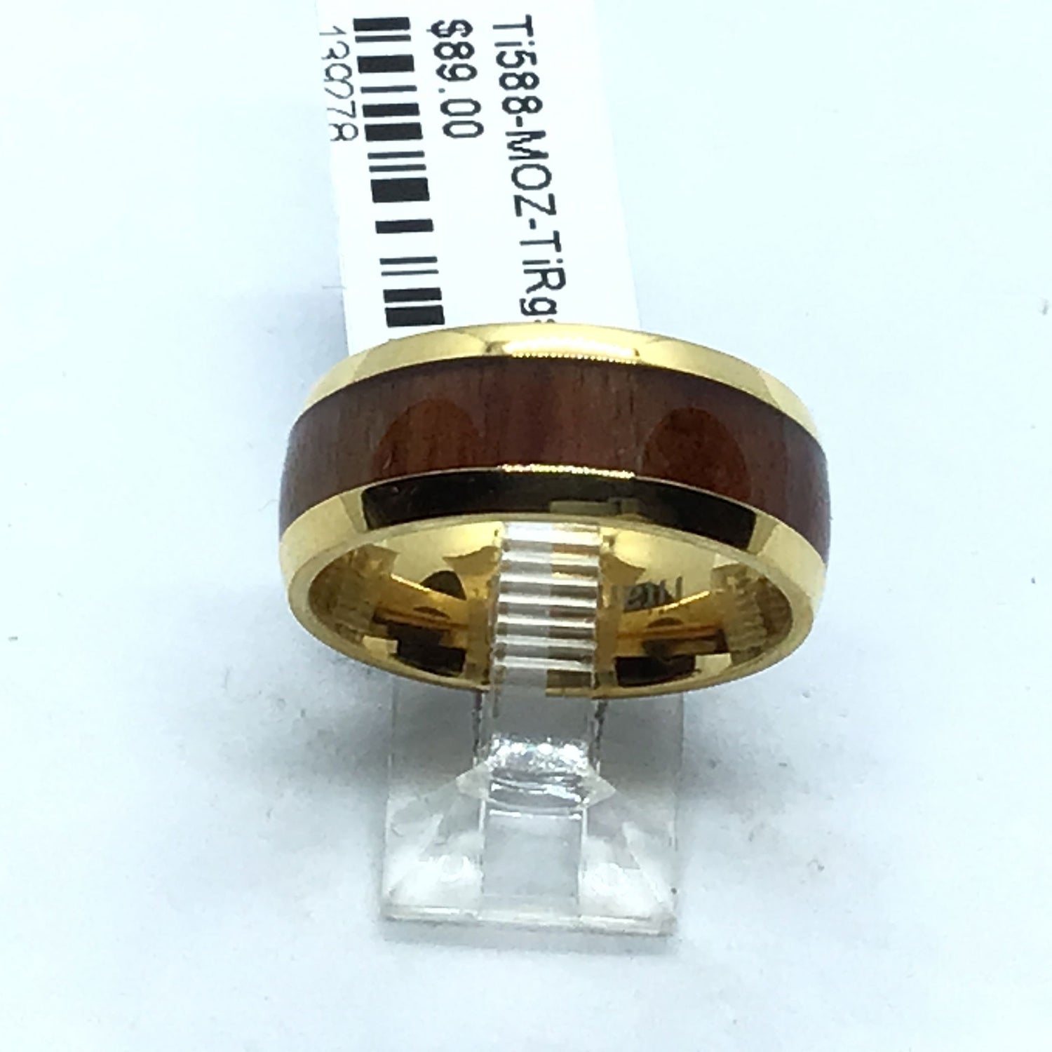 Titanium Ring 9mm Yellow Gold IP Plated with Hawaiian Koa Wood Inlay s10