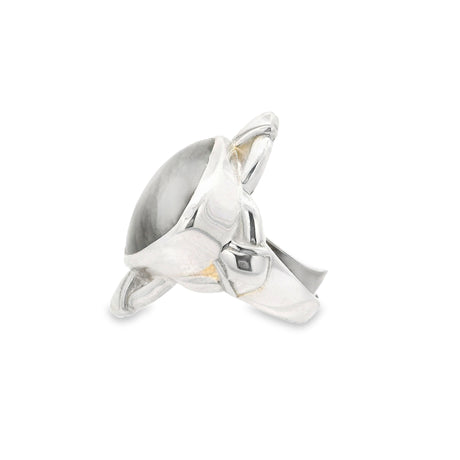 Regular price $13900Unit price /UnavailableVery low stock (1 unit)7 Chakra Ring - Faceted Pears With Silver Bezels On Silver Wire Flower & Cutout Band Top Sz6